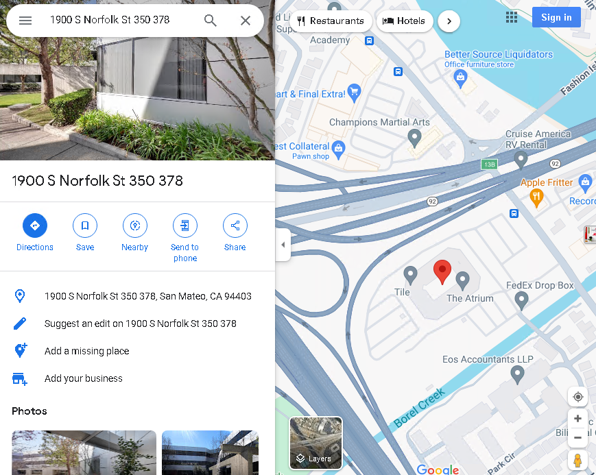 1900 South Norfolk Street, Suite 350, Room 378, San Mateo, CA 94403, U.S.A